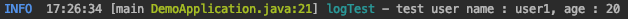 logger.info("test user name : {}, age : {}", user1.getName(), user1.getAge());